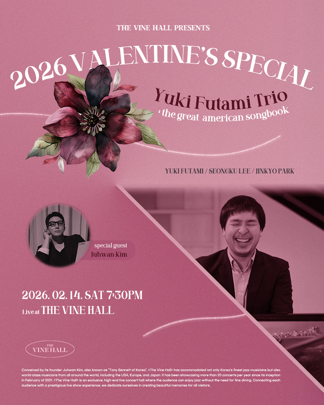 유키 후타미 트리오와 김주환의 협연은 재즈 스탠더드가 지닌 서정성과 스윙의 매력을 동시에 부각시키는 무대가 될 전망이다. 피아노 트리오의 정통적인 연주 위에 보컬이 더해지며, ‘The Great American Songbook’이 지닌 고전적 아름다움과 시대를 초월한 감성이 발렌타인데이의 분위기와 어우러질 것으로 기대를 모은다.