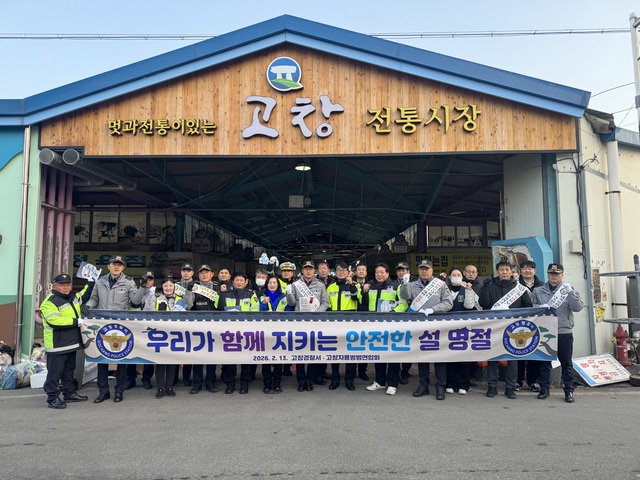 고창경찰서가 설 명절을 앞두고 지역 사회 안전망 강화에 나섰다. 고창경찰서는 지난 13일 전통시장과 터미널 일대에서 고창군 자율방범연합대와 함께 ‘범죄 없는 안전한 설 명절 만들기’ 민‧경 합동 캠페인을 실시했다고 밝혔다.