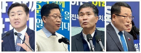 6·3 제9회 전국동시지방선거 전북특별자치도지사선거에서 더불어민주당 주자들인 김관영 현 지사와 안호영·이원택 국회의원, 정헌율 익산시장이 24일 중앙당 면접에 나란히 참석했다.