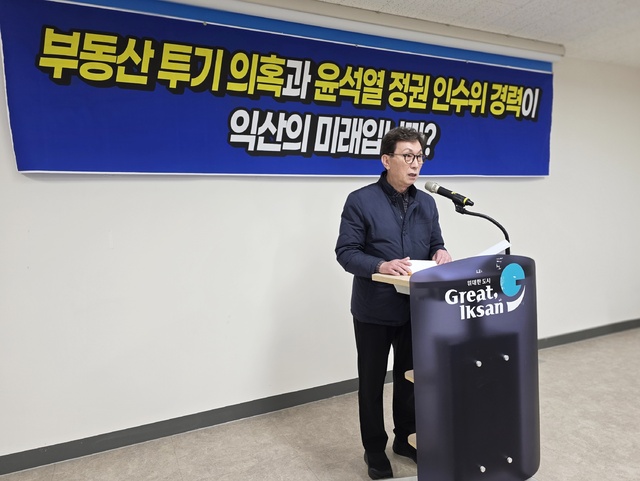 배승철 선거대책위원장은 25일 오후 익산시청에서 긴급 기자회견을 열고 “부동산 투기 의혹과 윤석열 정권 인수위 경력이 익산의 미래인가”라며 “정치에서 연대 자체를 문제 삼는 것은 아니지만, 그 출발점이 가치와 신뢰가 아닌 선거 구도라면 시민의 공감을 얻기 어렵다”고 지적했다.