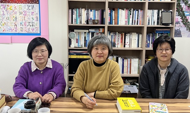 (좌측부터) 여성생활문화공간 비비와 비비사회적협동조합에서 활동하고 있는 활동가 봄봄, 이사장 김난이, 이미정 씨 /사진=박은 기자