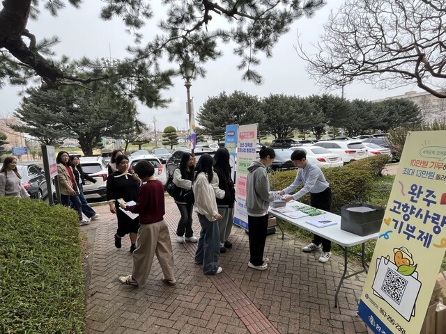 완주군이 우석대학교를 찾아 신입생과 재학생에게 주소 전입 혜택을 안내하며 대학생들의 안정적인 지역 정착을 지원하는 홍보 활동에 나섰다.