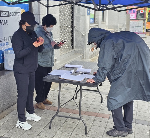 이날 이른 아침부터 비가 내리는 궂은 날씨 속에서도 현장에는 간이 천막과 서명부가 마련됐으며 비가 내리는 가운데서도 일부 시민들이 참여했다.