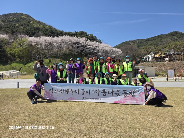 더다솜재가주간보호센터는 지난 8일 완주군 구이면 모악산 일대에서 어르신들을 모시고 ‘봄맞이 벚꽃 나들이’ 행사를 진행했다.